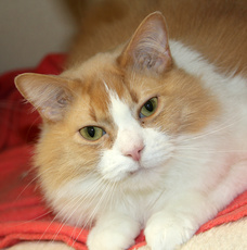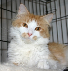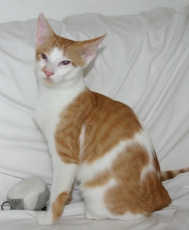 Oscar is a handsome orange and white tabby with a delightful personality. Only about a year old, he is neutered, in excellent health and up to date with all shots.