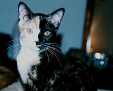 (also known as Cookie) is a beautiful, exotic looking calico female. She is very gentle and loving by nature. She loves for her belly to be rubbed, as well as her cheeks, the top of her head, her back, you know where I’m going. Oreo is a 2 ½ year old beauty and is very healthy.