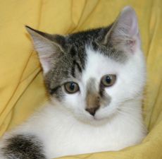 is an adorable male brown tabby with white mittens. He is always purring and loves being rubbed and petted. He will chase a ball or a string and pounce on his little mouse toys. Ohio loves being with his siblings! They all cuddle up together and play together. Ohio has the thin face of his mother and is just a beautiful kitten. He is curious and silly too. His mother Skky is also listed.