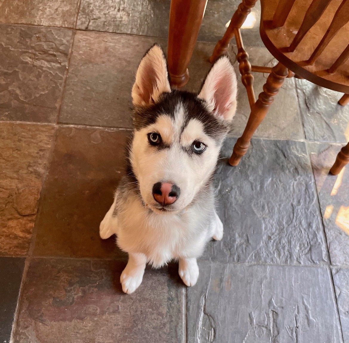 wee-wee pads as he learns to house train. Oreo has one perfect vision