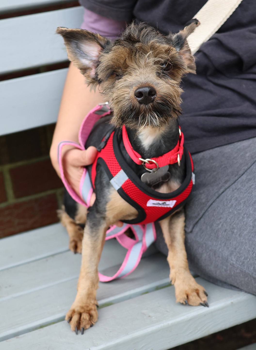 Olive is an approximately 2yr old yorkie mix who weighs 6 lbs. She was rescued from a Korean dog meat farm. Olive is sweet, energetic, and friendly! We are working on her housebreaking. She can be crated when you leave the house. Olive follows her people all around the house, and likes to be around people all the time. She is good around children but since she is so little children must be very gentle with her. Olive would be best as the only dog. As much as she likes other dogs, she wants her people to herself.