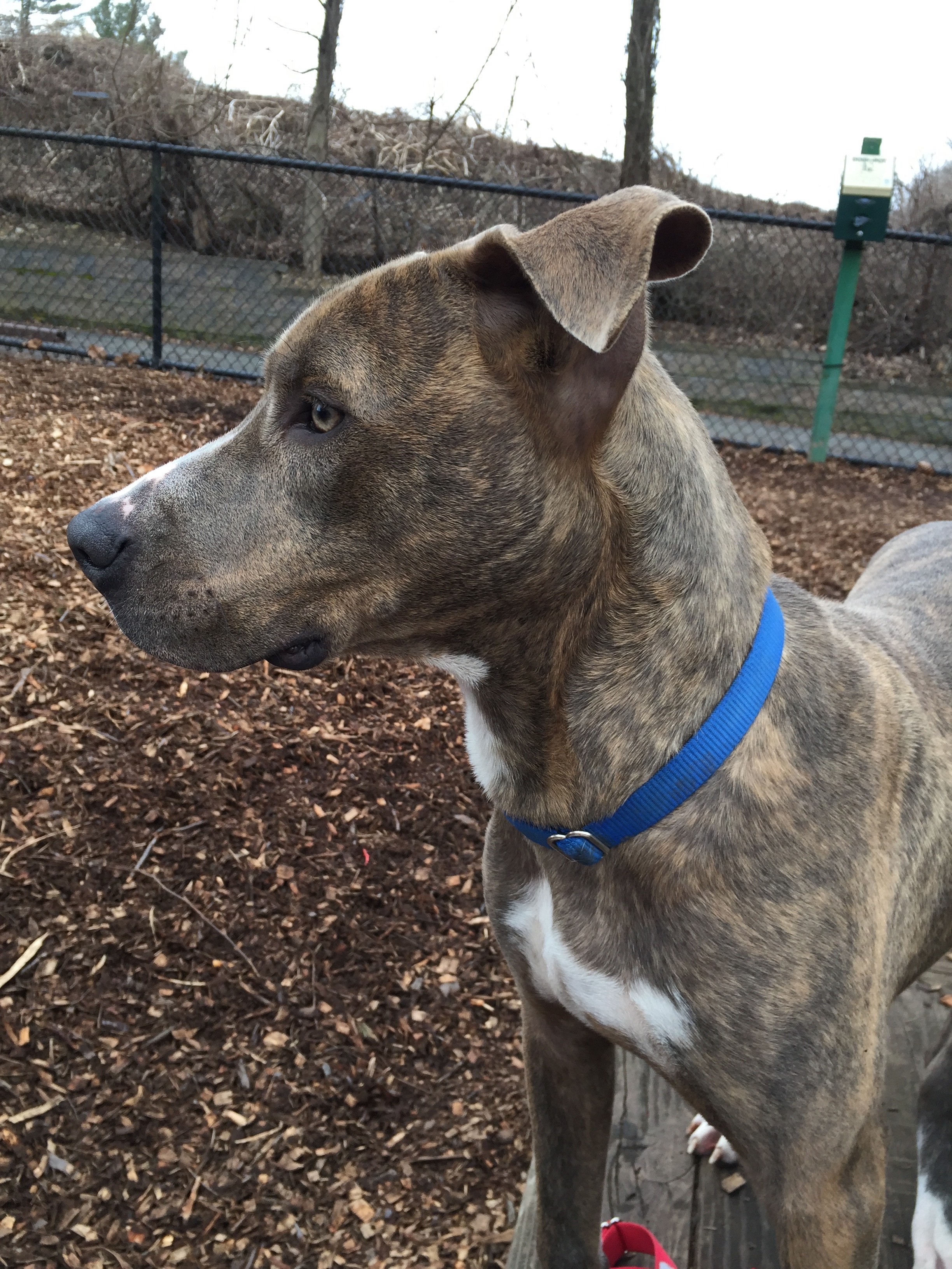 is an beautiful boy, about 8 months old and 35 lbs. He is very sweet, friendly and gentle. Loves all people and other dogs. He go to the dog park every day and loves to play with other dogs. He is still a puppy and will need some training, but is very smart and eager to please. Please fill out an adoption application.