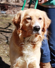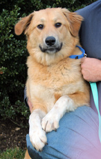 Olive is a beautiful Golden Retriever Mix. She is approximately 1 year old and weighs 75 pounds. Olive came to us very shy of people. She has made a lot of progress in her foster home. She loves to snuggle and thinks she is a lap dog. Olive enjoys going for long walks and running on the beach with other dogs. She would love a home with another dog to play with. She is very sweet and gentle with all dogs. Because of her shyness when meeting new people, she should not go to a home with young children.