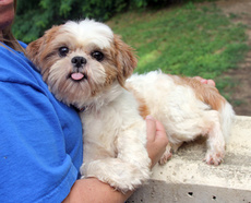 Oreo is an adorable 2 to 3 year old male Shih Tzu. He is a nice dog, gets along with other dogs and has not been tested on cats. He can be a little protective of his food, so we recommend he not go to any families with children under 8 yrs of age. He has a cataract in one of his eyes and has absolutely no sight hindrance. He is also housebroken and needs leash training. He is a dog that just wants to be with you. Sleeps peacefully nearby thru the night and gets in bed for a morning snuggle. His foster mom and him are getting quite attached to each other.