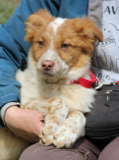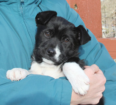 Is a beautiful BC mix, about one year young and 30 lbs. Oreo is a very smart, happy girl and is learning to walk on a leash (with great success). Her energy level is medium to high and would probably be great at Agility training. She's a sweetheart and loves people. She's learning to sleep in a crate and appears to be house trained. Oreo likes to herd and we do not recommend her going to a home with small dogs or cats.
