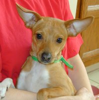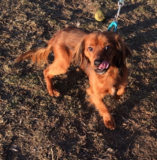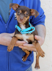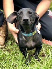 Otis is an adorable little guy, maybe a Dachshund mix about 6 months old? He is very cute, sweet and friendly. He is a little shy around new things, but warms up quickly. He loves to run around the yard with his foster siblings, and he sleeps quietly in his crate at night.