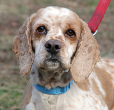 is a stunning pure breed English Cocker Spaniel, about 1-2 years old and around 31 lbs. He has a wonderful disposition, very sweet and layed back. He looks right at you with those big, brown eyes and melts your heart. He is friendly other dogs and LOVES people. He went to the groomer after these photos were taken and is now sporting a puppy cut. This is a great dog! Please fill out an adoption application.