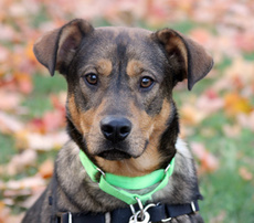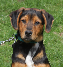 Oakley is a sweet and playful hound/shepherd mix. His mom is Olivia and his brother is Thumper (both are also posted). Oakley is a little shy at first, he gets nervous if approached too quickly, but outside in the fenced yard, he runs and jumps and plays like a little pup should. He's about 18lbs and 4 months old.
