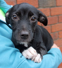 Adorable, male, black terrier mix puppy. This little gem is housebroken, walks well on a leash, does not chew and is a total pleasure to have around. He is about 20lbs and 6 months old. He is a puppy, so will need a family that can get him proper socialization and play time. He loves other dogs and is very good with kids.