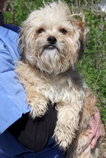 OK, we know -- he needs a trip to the salon. There's a dog under that hair somewhere! Regardless, Owen is an adorable poodle (non-shedding), about 3 years old and 12 lbs. This sweet, friendly boy is very outgoing, good with other dogs, and walks nice on a leash. Owen loves to be held, loves to snuggle and loves to give kisses.