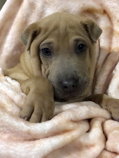 is an adorable pup, about 7 weeks old and 8 lbs. We're not sure of his breed, but he's not as fuzzy as his siblings. He is a sweet, happy and playful puppy. Lassie, Lulu, Otter, Peter and Buffy are of the same litter. We don't know either of the parents. Breed is just a guess. Please fill out an adoption application.
