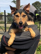 Oscar is a very sweet 9 month old terrier mix who weighs about 18lbs. He is a little shy at first, especially with adult men, but warms up with tasty treats and a nice lap to sit on. He gets along great with other dogs, loves running around the yard with his four legged friends and appears to be housebroken. He is a very nice boy who deserves a loving home, no small children given his shy nature.