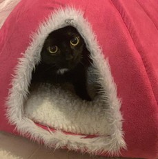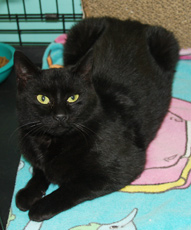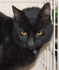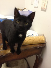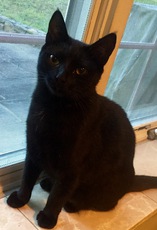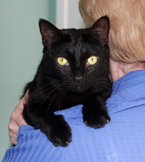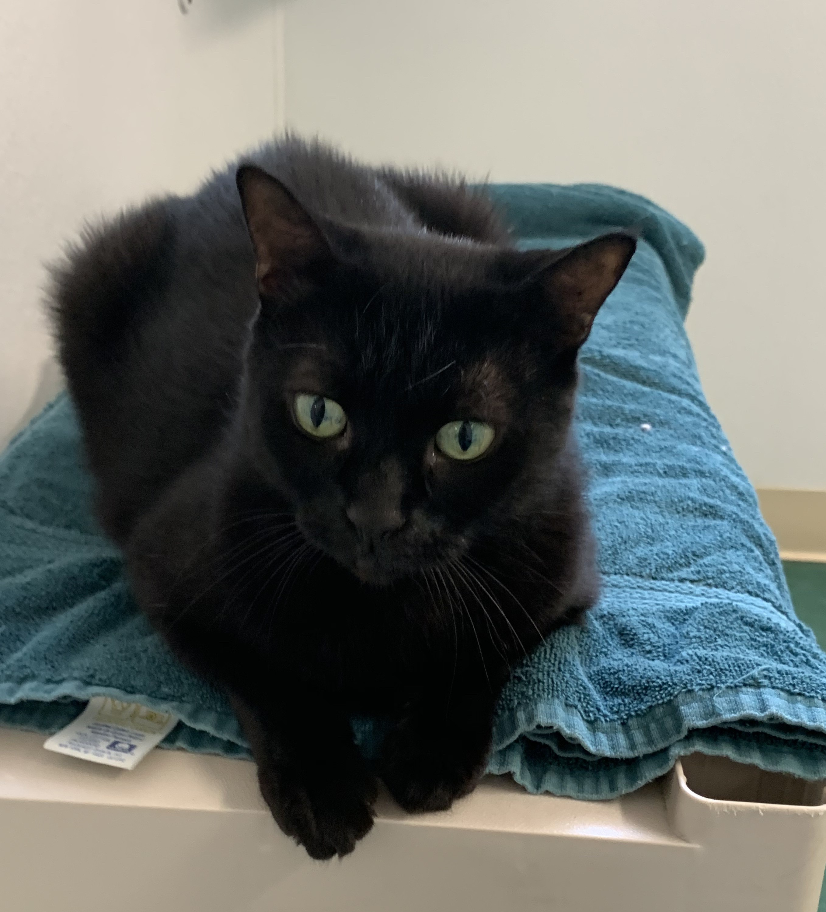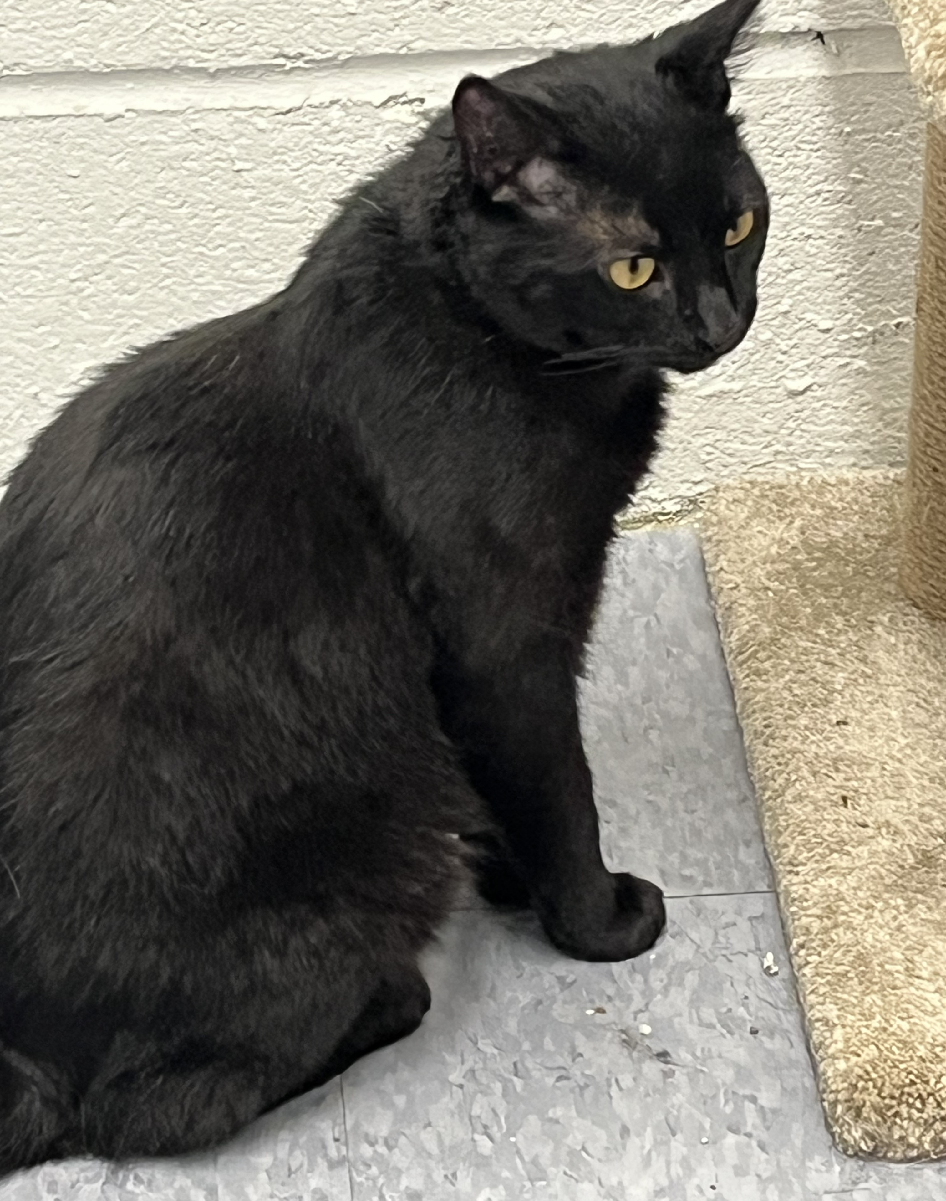 Pokey, 5 years old, is a beautiful sweet bundle of cat with the silkiest of black fur and emerald green eyes. She was adopted as a kitten and for no fault of her own, had to be returned these years later. Her trustingness and sweet personality shows that she had a loving home. Although she manages to coexist with other cats, we know that she would be much happier being a one-and-only.