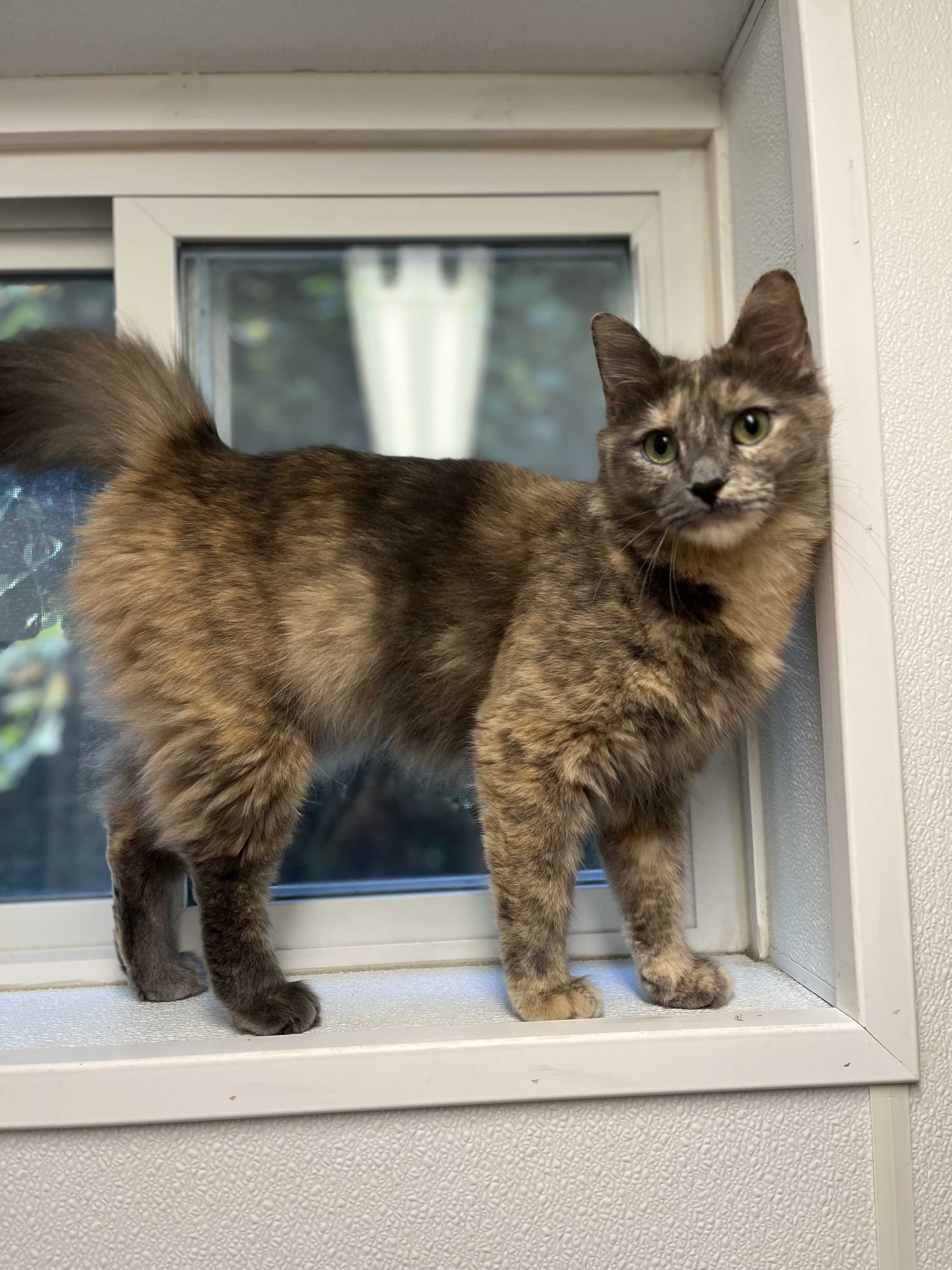 Precious is a gorgeous tortoiseshell/tabby female, about 1-2 years old. She is very sweet and friendly.