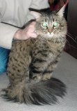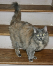 Princess is an adorable long haired tabby, about a year old. She is very sweet and friendly -- good with other cats.