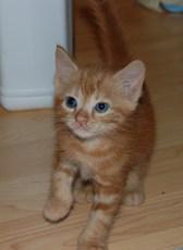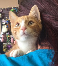 Pumpkin is an adorable kitten, about 10-12 weeks old. He is very playful, friendly and outgoing. He purrs the minute he sees you and loves to be held & cuddled when he is not busy playing.