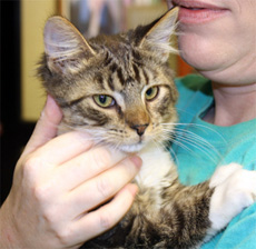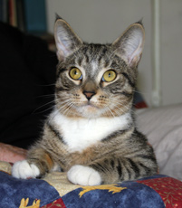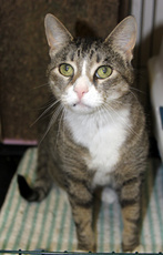 Patricia is a sweetheart of a young cat (about 2 1/2 years old) whose mothering days are behind her. Friendly as can be, this tabby is a virtual purr machine who loves to be brushed, petted and flip over onto her back for a belly rub. A true lap cat, Patricia is great with kids and would make a wonderful family pet. She is spayed, in great health and ready to go to her forever home.