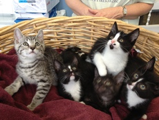 Primrose's Kittens were born on May 23, 2017, and will soon be old enough to be adopted. Right now, they enjoy being close to their sweet mom, Primrose. The six kittens (4 girls and 2 boys) are black with white underbelly's, same as their mother, also featured on this website. To meet these kittens, please contact Magaly at findingmagy77@gmail.com or Karen at karenrasmussen1@yahoo.com. (7/17)