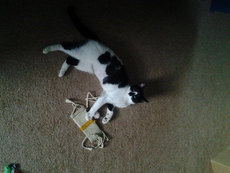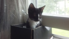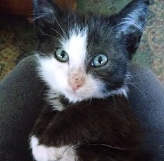 Panda (tuxedo male) is one of three Carolyn's Kittens, all of whom are playful, loving and sweet. They are not only extremely playful but very social. Panda entertains himself with pretty much anything in his path and really enjoys playing with his two siblings (Buddy and Maggie). The kittens are approx. 8 weeks old, as of 7/7/19 and reside in a foster home. (cc)