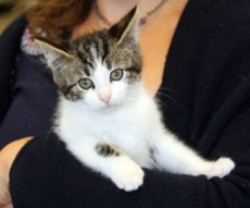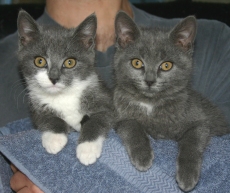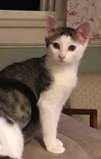 Poppy (white kitten with some black spots) and Flora (grey with some white) are two adorable kittens, born mid-April 2012. The two sisters are as sweet as can be. They love to play and wrestle and are so much fun to watch. You just won't want to take your eyes away from this darling duo, who love to curl up in your arms. To see photos of Flora, just click on "photos". To meet these two kitties, contact Gwen at gwenbuch@gmail.com