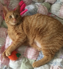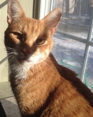 Patrick is a quintessential red tabby with a handsome round face and adventurous personality. To meet him is to want to scoop him up and take him home. He is about 2 years old and we feel would be happiest in a home where he can rule the roost with out other feline intervention. Thank you Anna Lazare for being my sponsor!