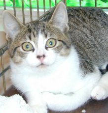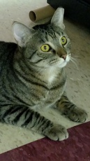 Poppy is a charming 1 1/2 year old friendly female kitty, who was thrown out when her owners moved. Now living in a great foster home, she gets along very well with other cats, kids and dogs. She is an all around wonderful family companion pet. This cute tabby is a winner.