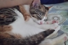 is a gorgeous 5 month old kitten. She is very loving and purrs like a lion. Good with other animals and very playful.