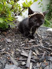 Primrose is a female cat born on February 27, 2016. She is petite, and has a beautiful black shiny coat with a white underbelly. Primrose is friendly and behaves well around other animals. She often seeks human interaction, and likes to be cuddled. Though not spayed yet, Primrose has her vaccinations including her rabies shots. She has a mellow, and easy-going temperament. She also gave birth to 6 kittens on May 23, 2017 who are also featured on this website. When her kittens have been weaned, Primrose will be spayed. To meet this sweetheart, please contact Magaly at findingmagy77@gmail.com or Karen at karenrasmussen1@yahoo.com to meet Primrose and her kittens. (6/24/17)