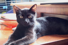ADOPTION PENDING Panther is a gentle, friendly 2 yr. old boy. He loves pets and lounging with his human companions. He's happy to engage in a game of "toss the mouse" but he's well behaved; No unruly behavior for this handsome gentleman. Panther is as loyal as they come, he'll never stray far from your side.