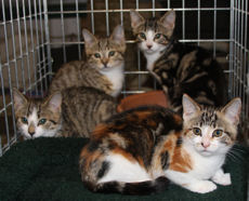 These adorable 5 kittens are the litter of Mom cat we named Pamela (not posted). The kittens are being posted separately (see Petunia, Phoebe, and Pocahontas), in addition to this group portrait (Pluto and PT Barnum have been adopted). The three remaining reside in a foster home and are ready for a loving permanent residence.