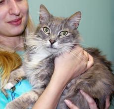 Princess II is declawed and a jewel of a cat, but she is losing her home because her owner had a baby who is very allergic. The picture of elegance, Princess wears her silky gray and ivory coat like royalty. She is a little reserved, so she won't pounce on you -- but will instead sit nearby and sleep at the foot of your bed. Princess will also come running for her favorite treats and even bat them out of your hand. She's even smart enought to find you and let you know when she's hungry. Born April 15, 2000, Princess is spayed, front declawed, and up to date on shots and vet visits. To meet Princess, please contact Laura at cocoa142@aol.com. (courtesy listing)