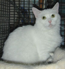 4/15/2000, she weighs about 11 lbs and up to date vet-wise. She is spayed and front declawed. Princess is on the shy side and prefers to sit nearby & sleep at the foot of your bed. She will come for treats and even "bat" them out of your hand. She also comes and cries when she is hungry. She needs to find a new home because her owner just had a baby who is extremely allergic. To meet Princess please e-mail cocoa142@aol.com. (courtesy listing)