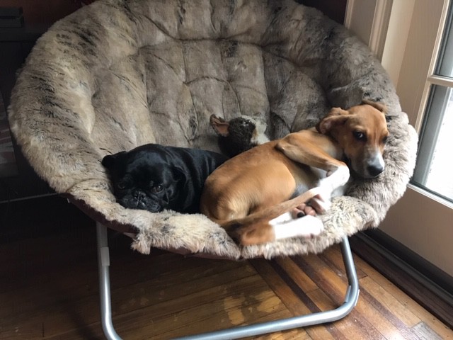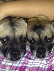 Pugs and BuBu are absolutely the most adorable and entertaining pups. At only 12 and 13 pounds a piece they are full of personality and hijinx. Everyday is a party for the two 1 year old cuties. They love to play and explore their foster home, play with the other 4 much bigger dogs and cats and hang out with the kids. By themselves they will chase each other and tumble around. Socks left on the floor become a treasure to them. They are also just the right size to hold and cuddle...cradle them in your arms and you will get lots of kisses. They are good eaters, sleepers and "sharers". They are almost housebroken. These two brothers have been together since birth and would like it to stay that way. Thank you Kathleen M Larkin for sponsoring our ticket to freedom!