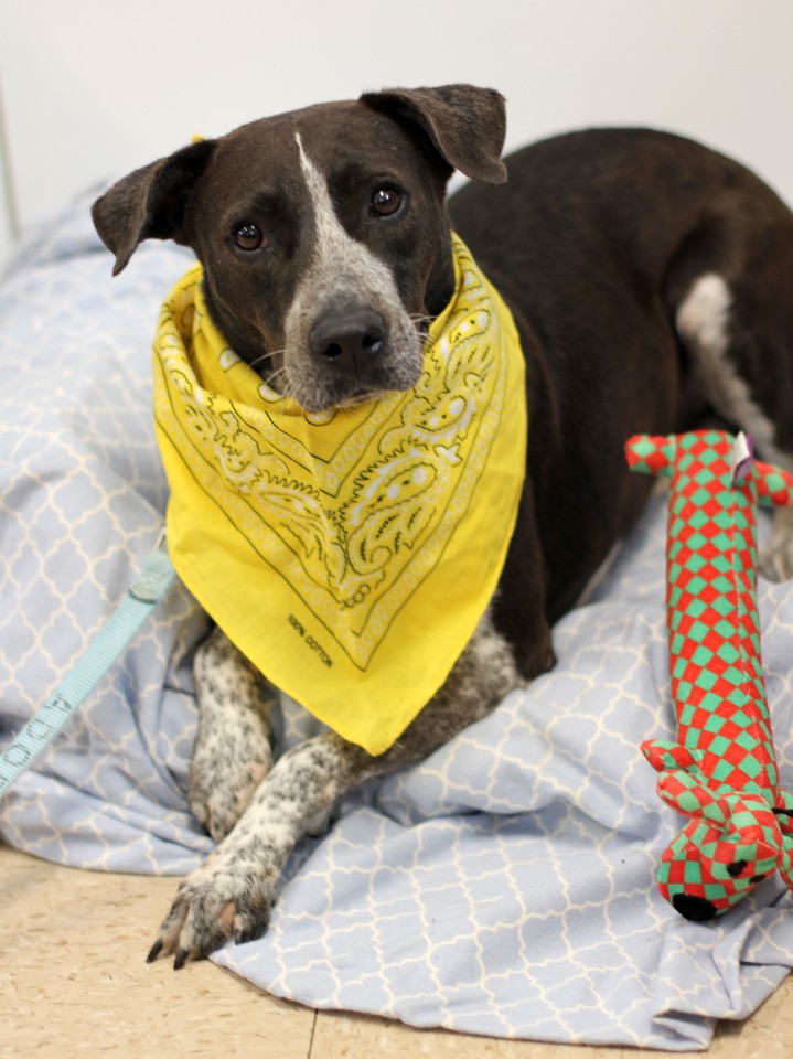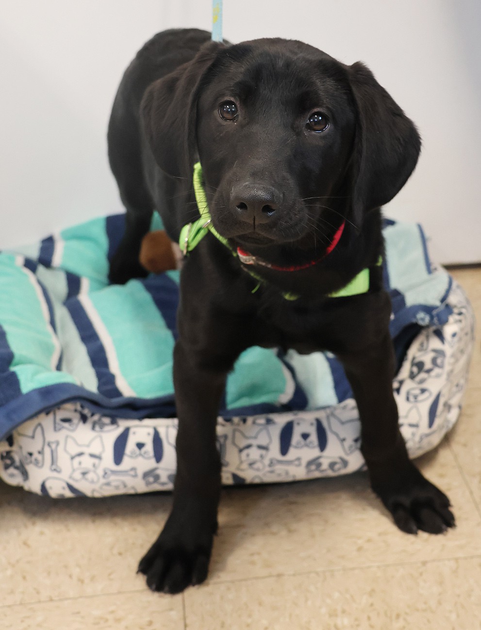 Sex: Female Age: 8 months Weight: 25 lbs Breed Mix: Lab mix Shed: Yes Energy Level: high House Trained? Yes Good w/ Dogs? Yes Good w/ Cats? unknown Good w/ Kids? Yes, better with older kids