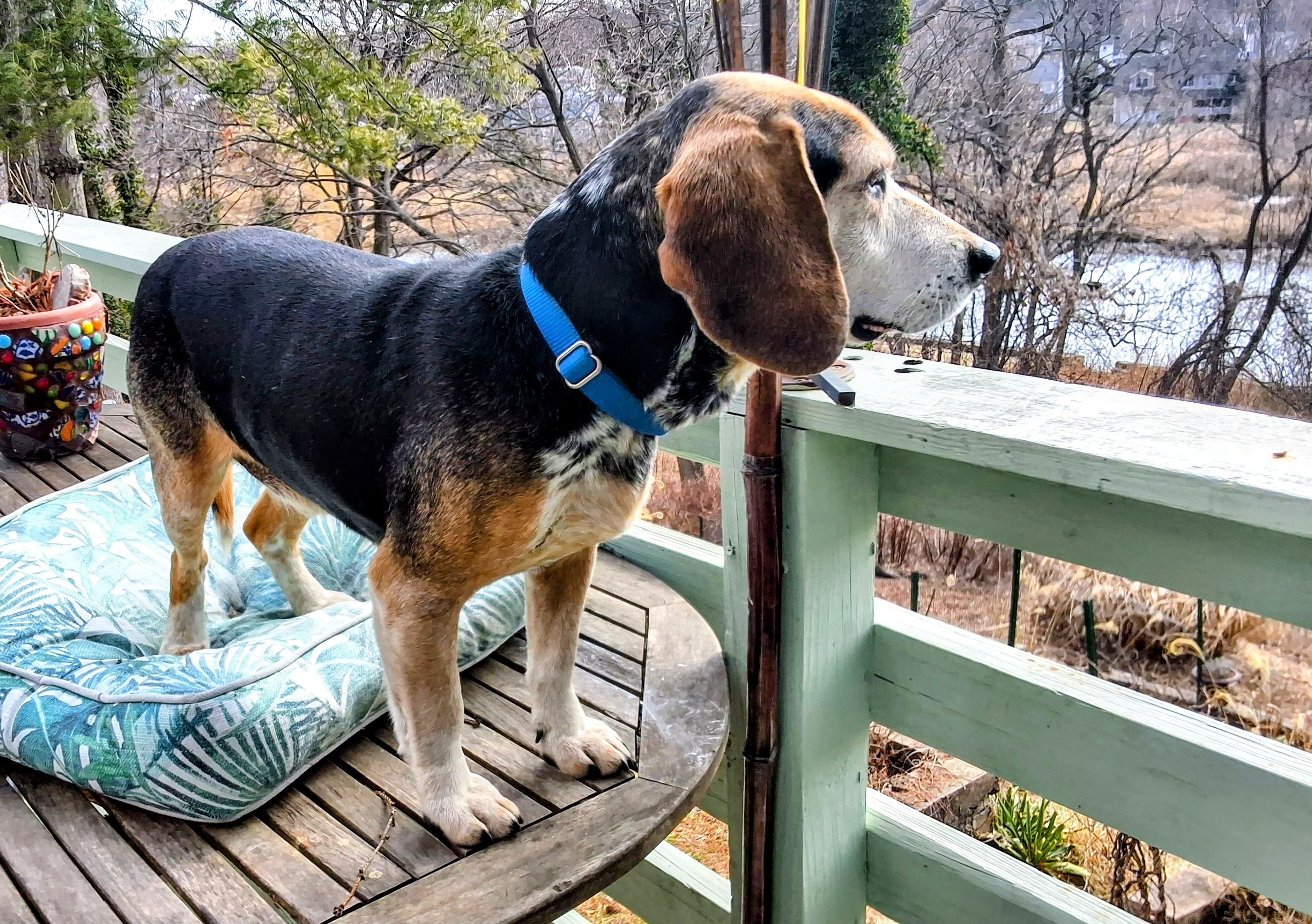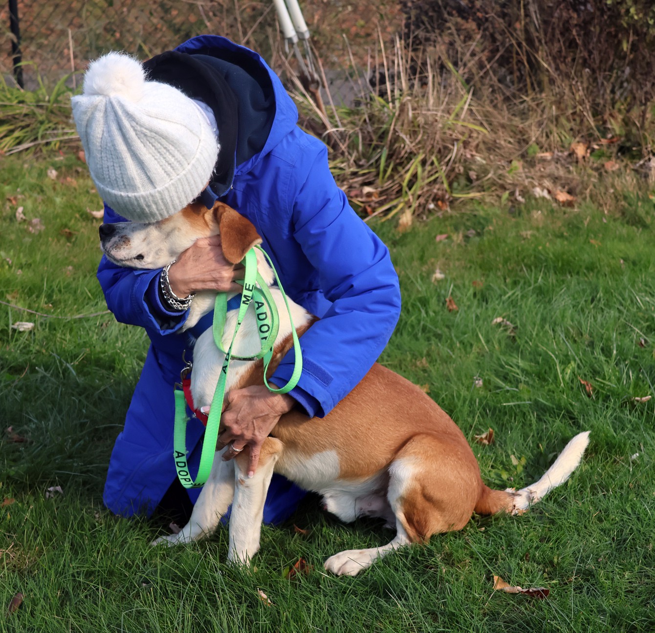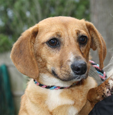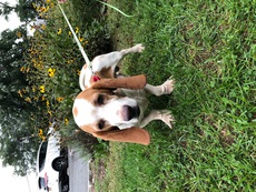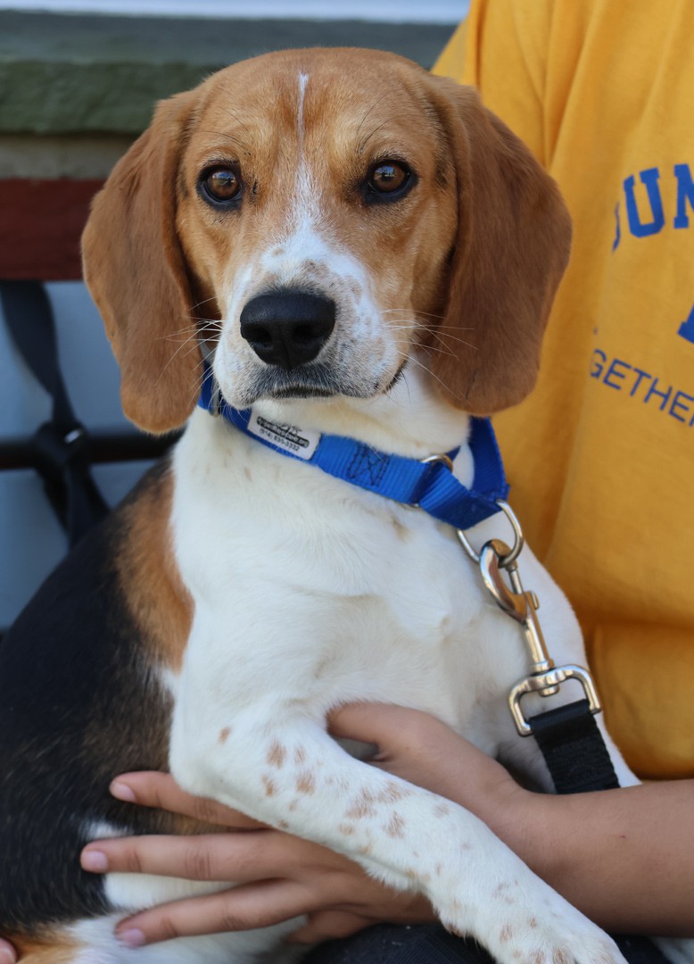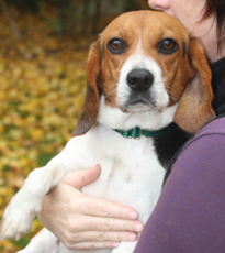 "Prissy" is not Prissy so her foster family has taken to calling her Missy! She is an all an all around great petite beagle at 14 lbs and 1 year old. Happy and willing to follow the mood of those around her. You want to play? fine.....Walk? fine.....Watch a movie? fine. This is a wonderful little family dog who is great with the foster families older dog. She is crate trained and housebroken and is learning to stay off the furniture and walk nicely on a leash. Missy is a beagle and true to her breed will take off following her noise if given a chance so she will so a fully fenced yard or an "on a lead" only policy. Missy isn't photogenic so her pictures don't show her sunny, willing disposition. Thank you Laure Rooker McKenna for sponsoring my ticket to freedom!