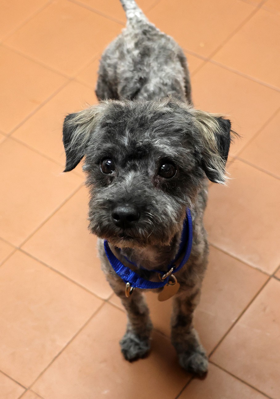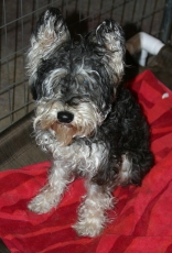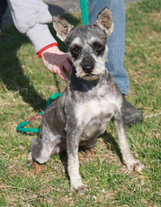 Paige is an adorable scruffy Schnauzer mix, about 1 year old and around 18 lbs. She loves to be around people and getting lots of attention. She is very happy cuddling up in your lap, but when outside playtime happens she becomes a speedster that can run laps around the yard like Speedy Gonzalez. Agility training would be her thing. She is looking for a forever home with lots of love and attention where someone is around most of the time. Will do great with kids due to her gentle nature. She also seems shed a little bit.