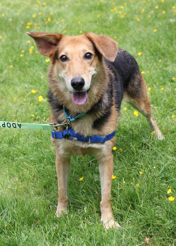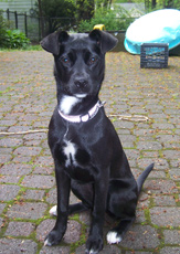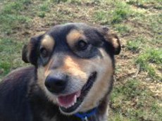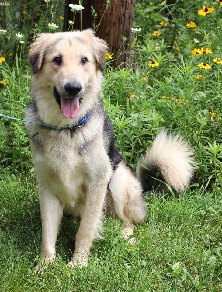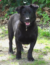 This Shepherd/Lab mix is a sweetheart! She was rescued from a home where she was neglected and ignored, yet she holds no grudges. She loves to be petted, cuddled and is happy to share kisses. She seems to be fine with most dogs but likes to chase cats. Paige is about 50 lbs and around 2 years old.