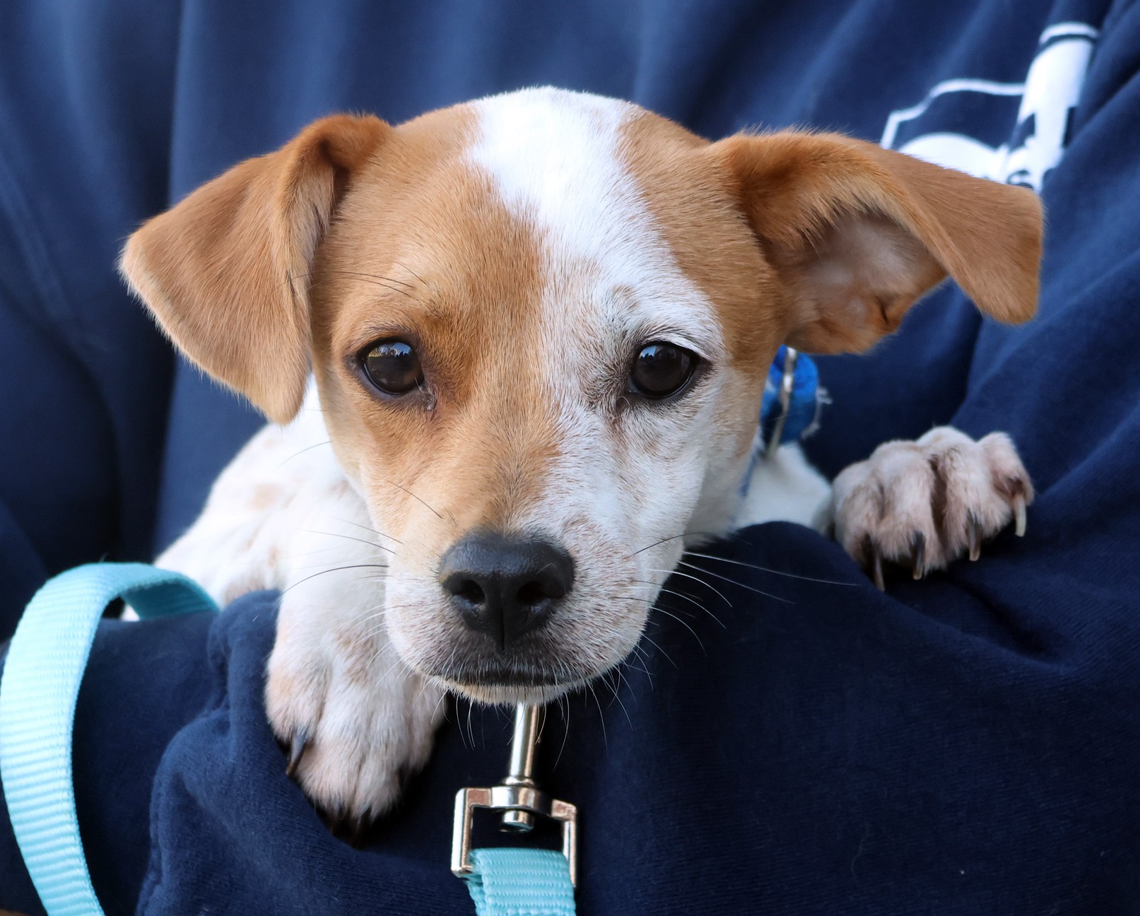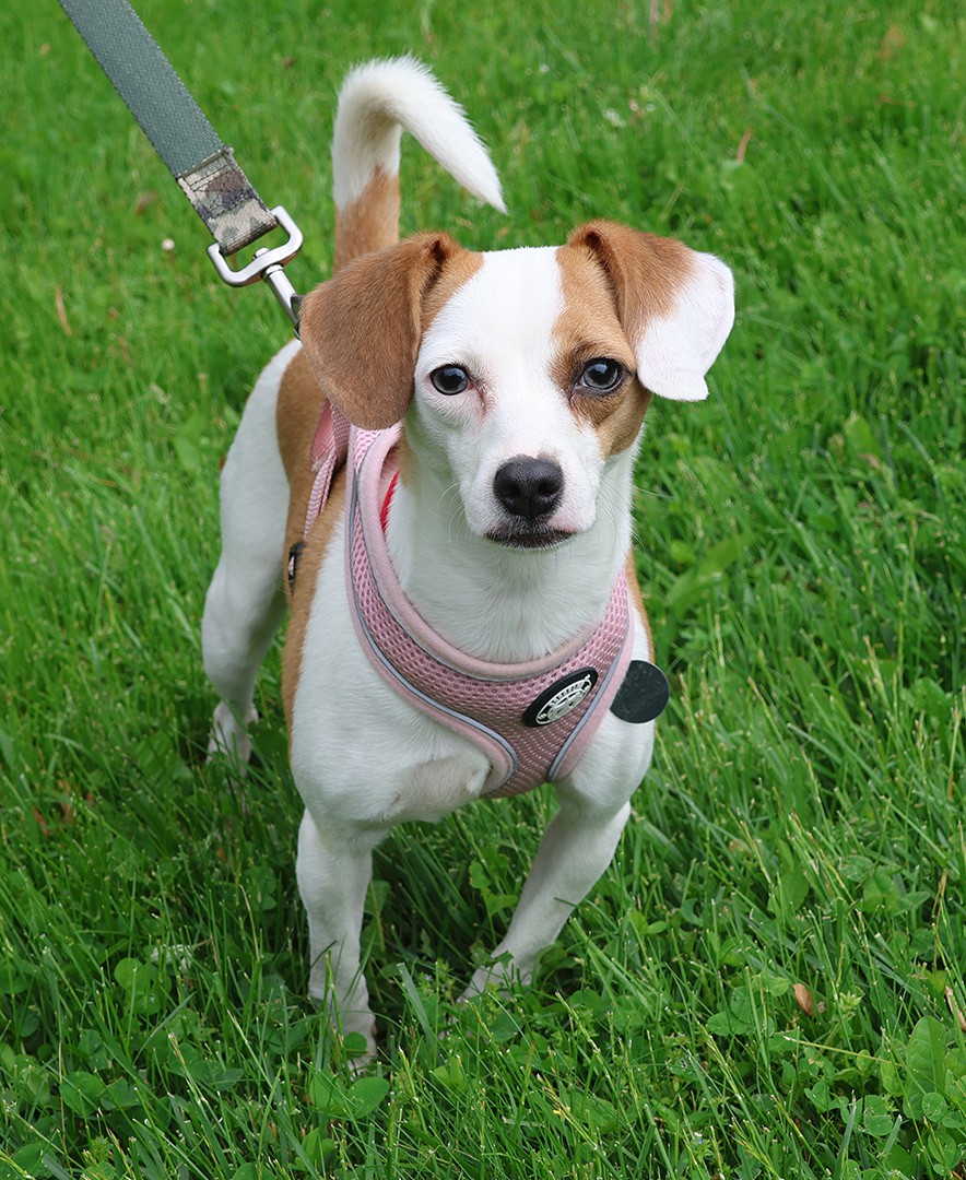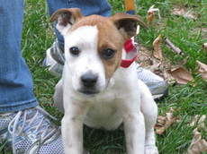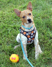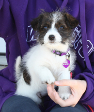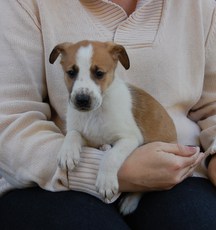 Pansie is a cute JRT mix, about 5 1/2 months old and about 15 lbs. Pansie is a love bug who is a little on the shy side. She would love to find a home with another outgoing dog who can show her the ropes. She is a sweetheart who loves the attention of her people! She has lots of energy and loves to play with the other small dogs in the house! She desperately wishes the cats would play too but is learning to accept it. She is coming along great with her housebreaking and is crate trained too. Due to Pansie's puppy like playfulness and energy she would be best in a home without young children.