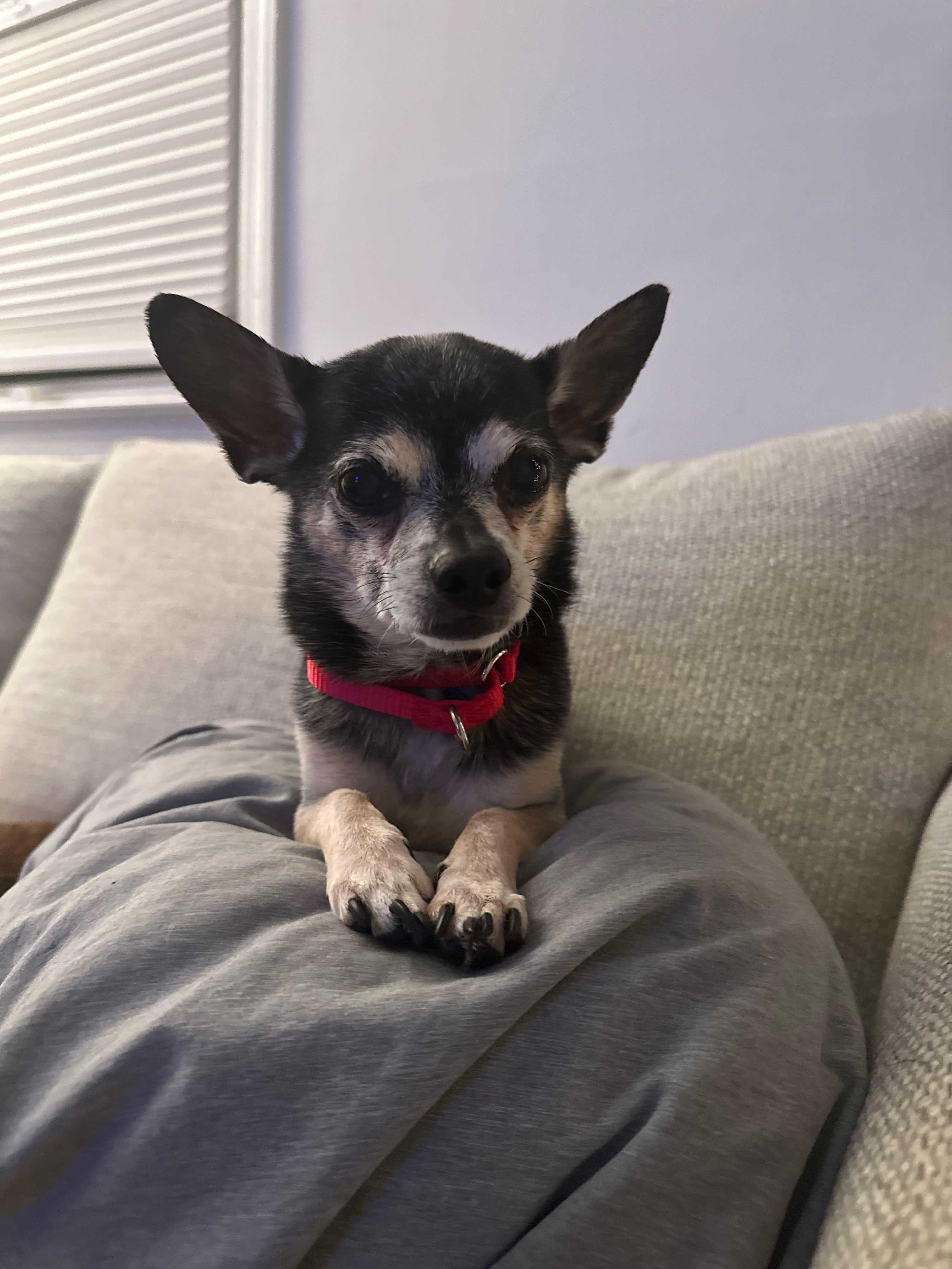 Paola is a very low key dog. She is happy just relaxing and taking it easy. Every now and then going for a nice walk or chasing a squirrel is a fun diversion, but overall, she is a really low energy dog. She is about 15 lbs and between 1-2 years old. She is also great with cats and other dogs and loves all people.