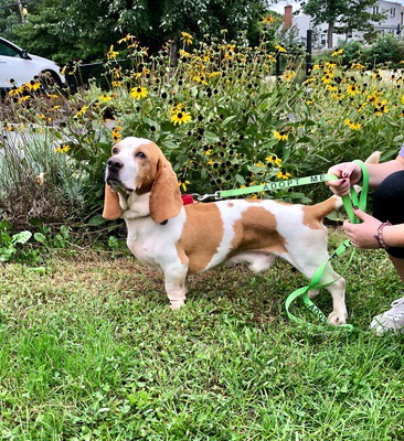 Puck is a 45 lb. 2 year old Basset Hound mix. This beautiful boy had a rough go at life until he came to Pet Rescue . He had to learn to trust humans and that when they pet him, they mean no harm. He is a lovely boy and has really come into his own! Puck is housebroken and is working on his leash manners (he tends to pull). This guy will take some time to adjust to his new humans, but once he does, he likes to be close by. Puck has a big personality, loves long walks and is a happy boy. He will do best in a dog savvy home with older children that will continue his positive reinforcement training and where he is the only dog. He is all charm this one - come meet him! If you are interested in this dog, please submit an application directly to our website at www.ny-petrescue.org Only applications submitted directly to Pet Rescue will be considered.