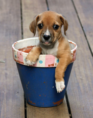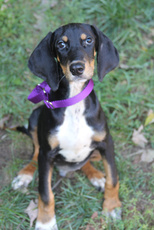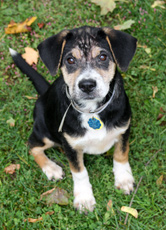 Painter is a sweet, little Beagle/Lab mix. She is 4-5 months old and weighs 15 lbs.