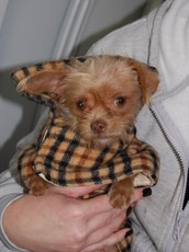 What's hot for holiday fashion? Paisley, Paisley, Paisley! This adorable little gal will go with just about any wardrobe - you can even mix Paisley with plaid and burberry and no one will complain ;-) This tiny girl gets along with other dogs and is so cute, you'll want to take her everywhere with you -- and she wouldn't mind that one bit at all. She is also looking for home that will give her the love that she never had.