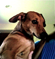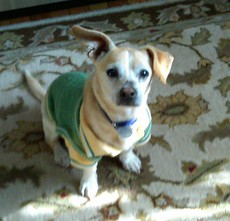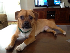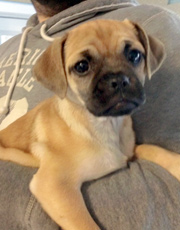 is a male puggle, about 2 years old and 15 lbs. He is a sweet, loving boy. Thank you Donna Correale for sponsoring my ticket to freedom!