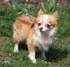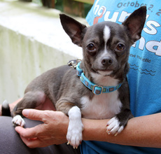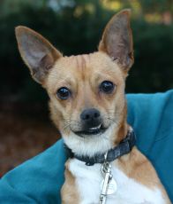 Parker is a very mellow 1 yr old 7 pound Chihuahua. He is still a bit tentative around new people but loves to be near the action. Parker would love to be in a calm house that he can explore on his own terms and his own time. He is great on a leash and enjoys trips in the car. Parker lives with 8 other dogs and a cat and gets along with everyone. Parker is housebroken and comes in from the yard when called. He is such a sweet heart that he will make the right family very happy.