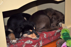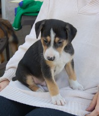 Meet our P puppies born in a loving foster home on 12/22/16 to Momma Polka, pictured last. They are all very affectionate, playful and well socialized -- they seek attention of the humans that come to visit. The mom is a 1 1/2 year old, 45 lb Australian Cattle Dog mix. They are all looking forward to going into a loving forever home.