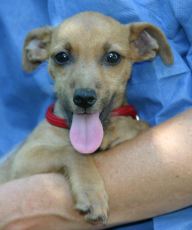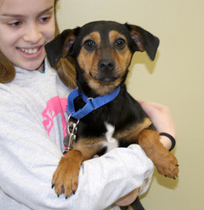 Paisley is an 11-week old, 13 pound dachshund mix. She is doing well with house-training using wee wee pads or waiting at the door to go out. She sleeps through the night and is very sweet and playful. She is very social and gets along well with dogs, cats and kids.