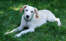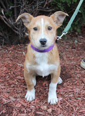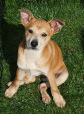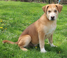 We think Priscilla is part retriever with maybe a bit of a hound mixed in and at over 30 pounds at about 5 months she will be a big girl. While still a touch shy at times, Priscilla is really coming out of her shell in her foster home. She is very sweet and gentle. Priscilla is learning to be a real puppy playing in the yard, walking on a leash and attempting to roughhouse with her foster sister and foster cat. She would love to live with a family that will help her become the confident pooch she was meant to be. She is being fostered in an active family with other pets and 3 young children. She loves to hang out with the kids whether they are playing outside or watching TV. She is housebroken when kept on a schedule and learning to enjoy the car rides. She is great with cats, kids and other dogs.