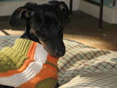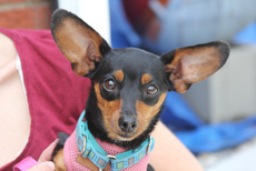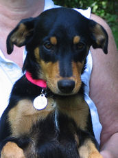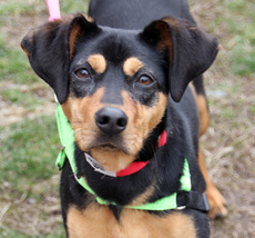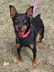 Paisley is an adorable female Min Pin mix, about a year old and 28 lbs. She is very sweet, housebroken and sleeps peacefully in her crate through the night. She loves to play with other dogs and is good with children.