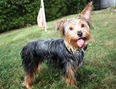 Puccini is one great dog. He enjoys taking walks, playing with toys (or an occasional sock), running in the yard, chasing a ball or playing with other dogs -- but what he really LOVES is being close to you! There's no place he'd rather be than on your lap, resting his head on your shoulder. Puccini is a 12 lb pure Yorkie. If kept on a schedule, he will do all his "business" outside. In his foster home, he sleeps quietly through the night in a crate - but if his forever home wants him in the bed, he would happily accommodate. Puccini is the convenience of a small dog with a silly personality sure to delight.He likes dogs and cats. Households with teens or adults only, please.