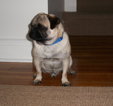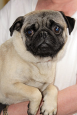 Pugslie is a very sweet and friendly male pug about 4 years old. He is very gentle, easy going, and a real lovebug.